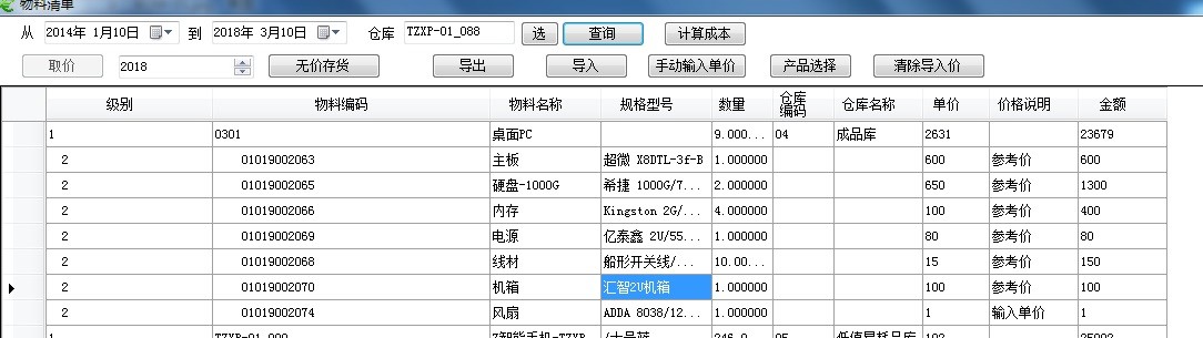 在展開(kāi)產(chǎn)品BOM中,用顏色或行次區(qū)分正式價(jià)、參考價(jià)及無(wú)價(jià)格。如正式價(jià)格底色為綠色,參考價(jià)格底色為黃色,既無(wú)正式價(jià)也無(wú)參考價(jià)標(biāo)紅色。